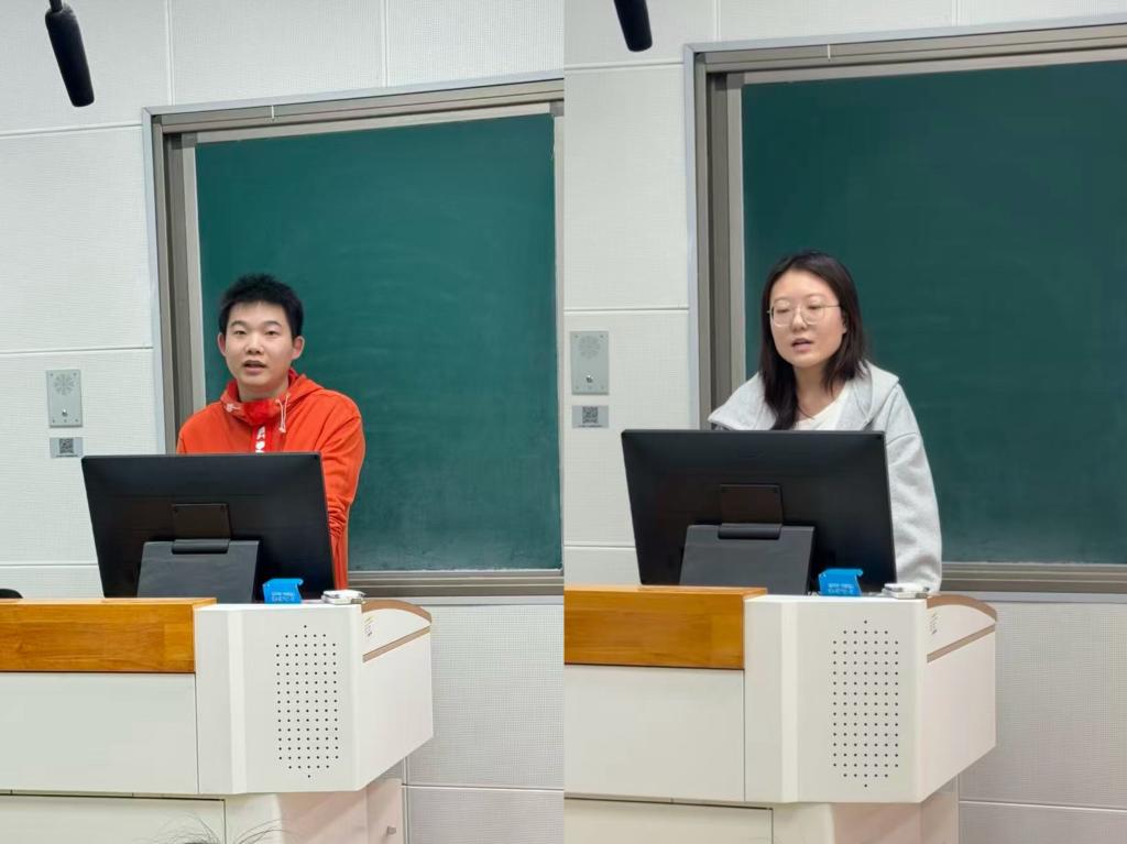分享环节中,刘冠江结合工程实践导向,以三维重建项目为例,围绕选题定位、算法落地、硬件集成和论文撰写等内容,系统介绍了工科类学位论文写作的实践路径。宋晓宇围绕论文写作全过程,从研究成果凝练、前期准备、写作思路到格式规范等方面进行了详细讲解,并结合自身经验分享了文献阅读、工具使用和心态调整等方面的实用方法。在互动交流环节,两位同学就论文框架设计、实验方案完善、修改提升等问题,与现场同学进行了深入交流,现场氛围热烈。