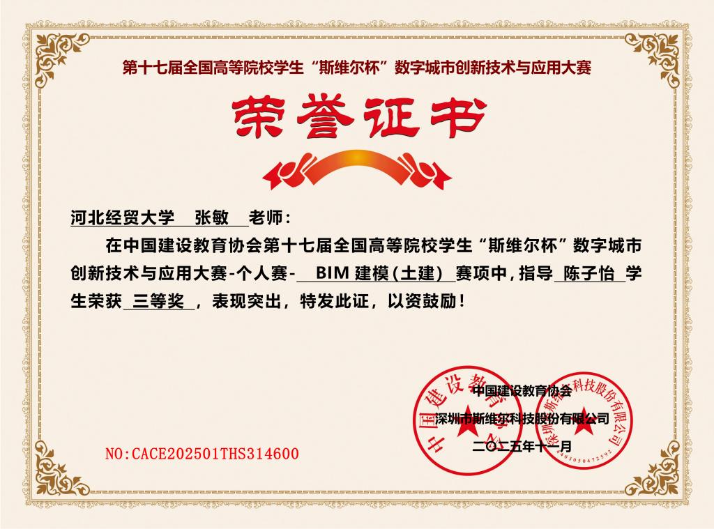 近日,第十七届全国高等院校学生“斯维尔杯”数字城市创新技术与应用大赛个人赛获奖名单公示,工程管理系组织学生参加了BIM建模、数字计量与计价等赛项,获全国一等奖1项、二等奖1项、三等奖2项。