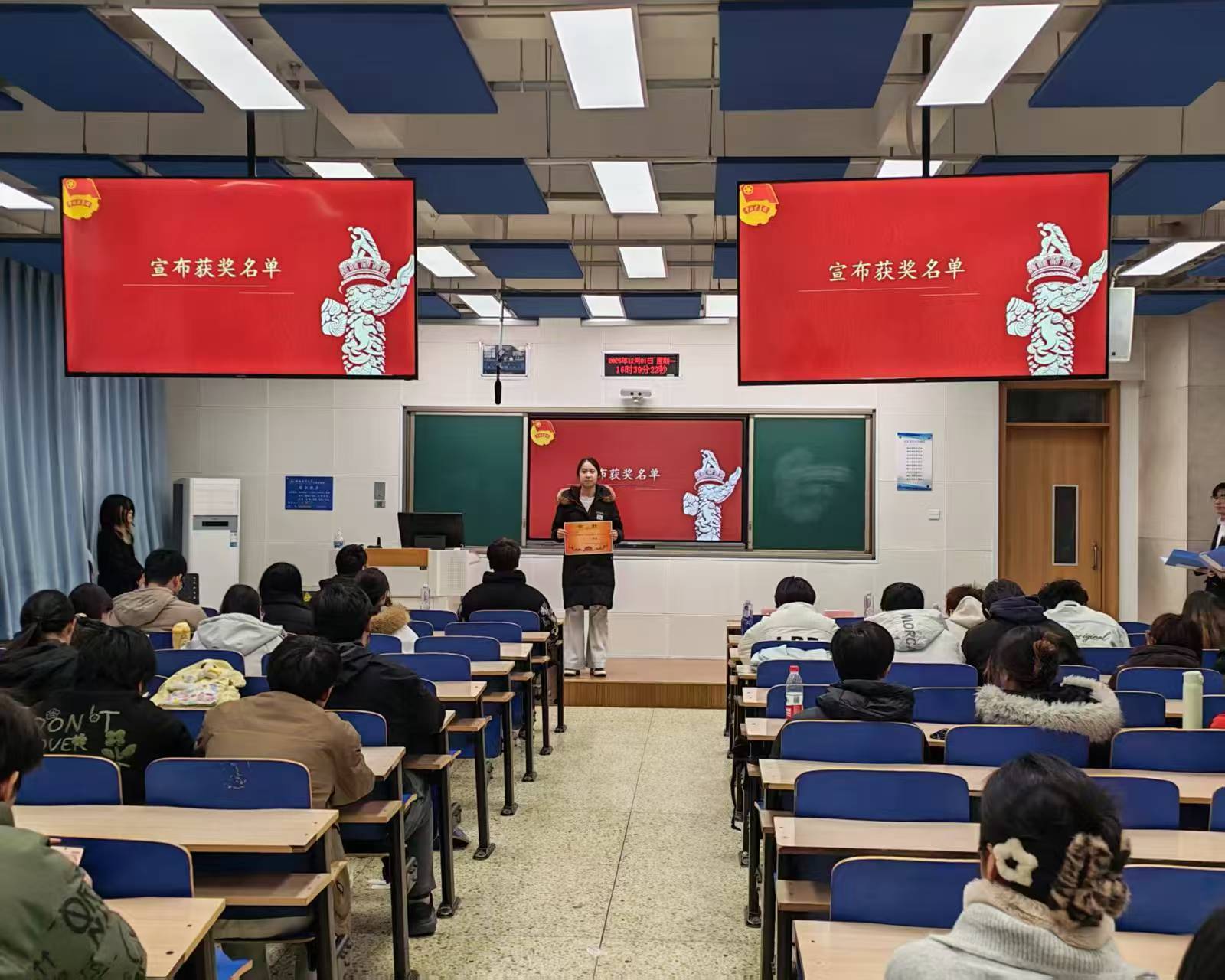 团委负责人为获奖团支部颁奖,并作总结发言,希望同学们将历史记忆转化为奋进力量,用青春行动守护和平、书写担当。