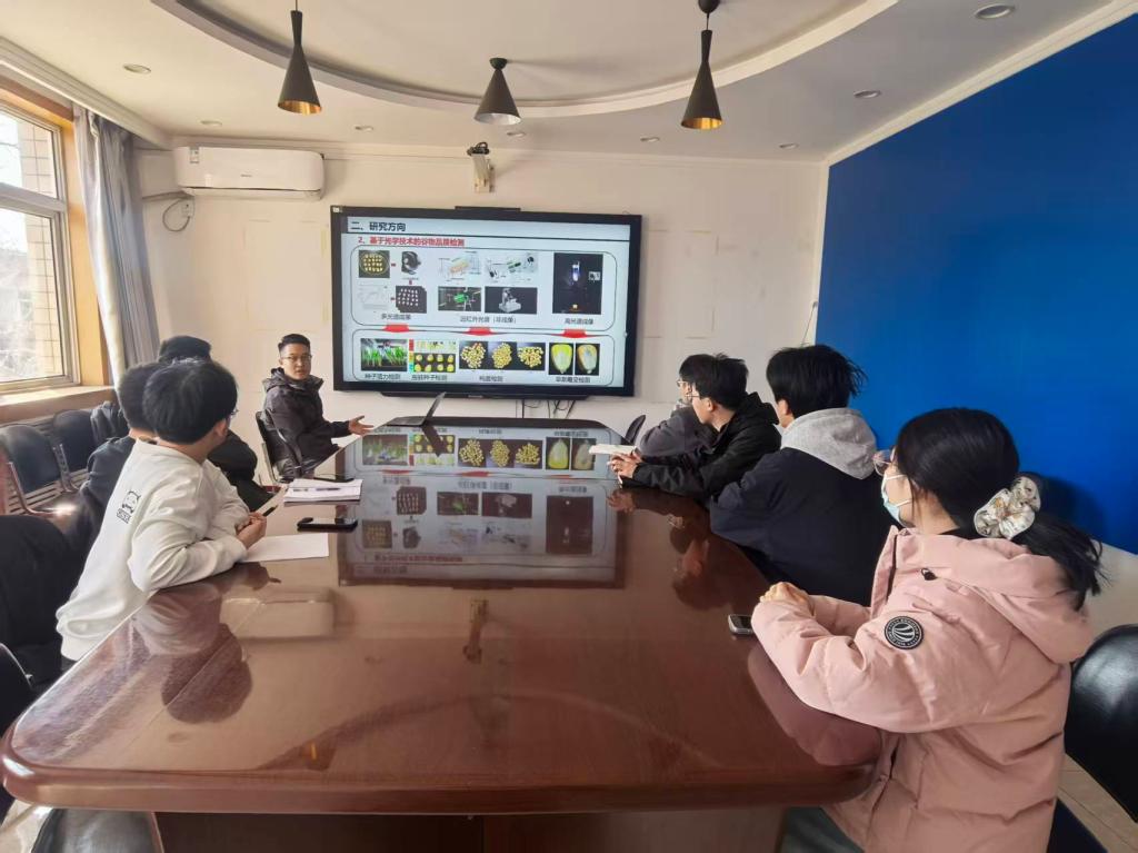王哲理首先从成像光学与非成像光学技术两个角度对目前农产品品质无损检测领域进行了综述,并详细的介绍了其研究成果。以种子品质检测为例,从设备开发,数据采集与处理,多源数据融合,模型构建等内容深刻解读了农产品品质检测的技术流,并就今后研究提出了展望。会后,师生们就相关问题展开了充分交流与讨论。
